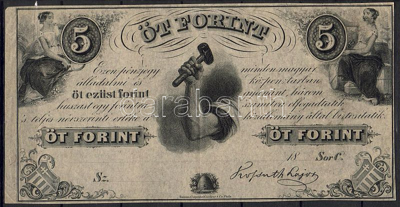 18.. Emigrációs "Kossuth-bankó" 5Ft Philadelphia T:II+ Csak egyszer ha... https://www.darabanth.com/de/37-Fernauktion/37.0/Numismatik/~189/18-Emigracios-Kossuth-banko-5Ft-Philadelphia-TIIplus-Csak-egyszer-hajtva~II73048