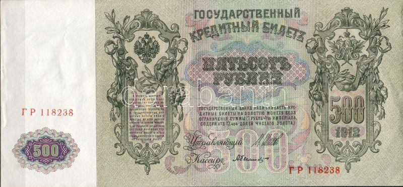 Beschreibung: Oroszország 1912. 500R extrém nagyméretű bankjegy T:II+ Csak egyszer hajtva, törve nem!