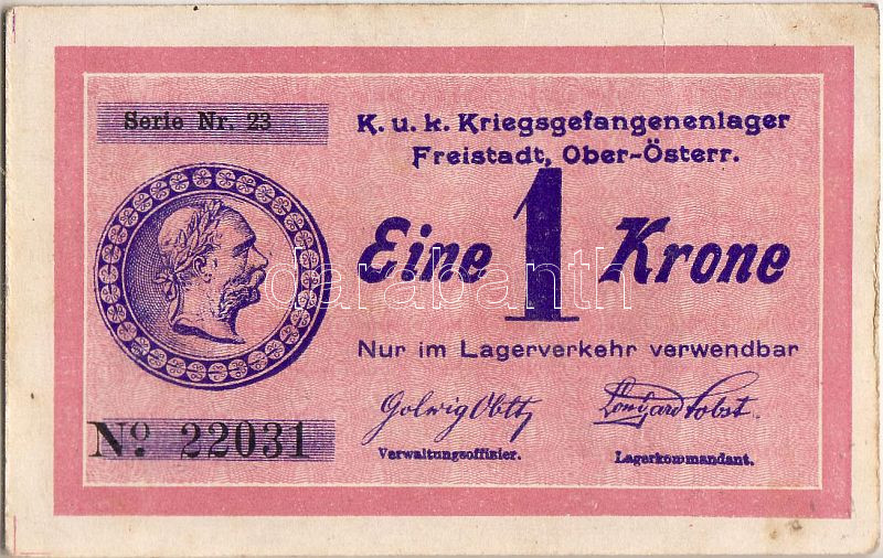 Ausztria Freistadt/ hadifogolytábor (I. Világháború) 1K T:II+ https://www.darabanth.com/de/37-Fernauktion/37.0/Numismatik/~190/Ausztria-Freistadt-hadifogolytabor-I-Vilaghaboru-1K-TIIplus~II72764