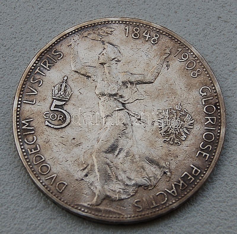 Beschreibung: Ausztria 1908. "Jubileum" 5K Ag T:3 pici ü.,k.
