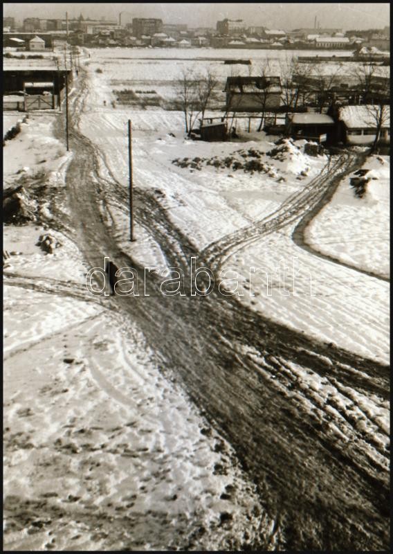 cca 1933 Kinszki Imre (1901-1945) budapesti fotóművész hagyatékából, vintage NEGATÍV (Zugló, a bolgár kertészeten át vezető útról, a lakás ablakából fotografálva), 6,5x4,5 cm