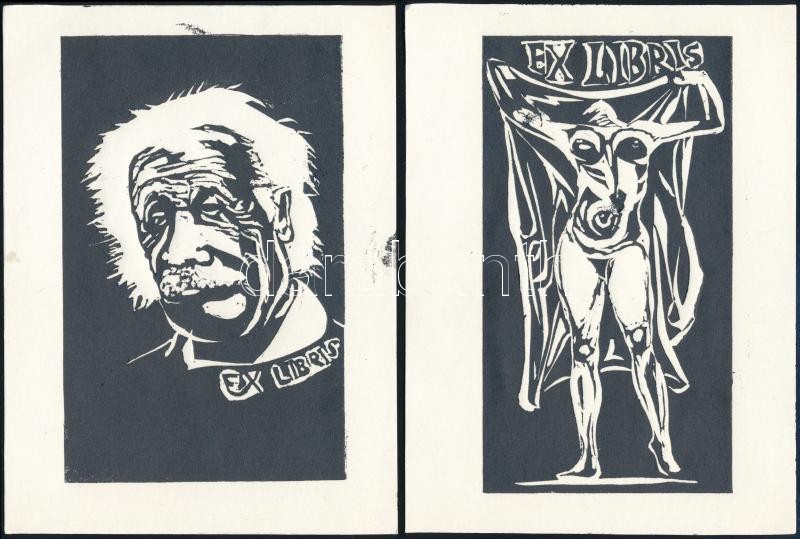 Beschreibung: Jelzés nélkül: össz. 4 db Ex libris, 1 db női akt motívummal, 1 db Albert Einstein portréjával. Fametszet, papír, lapméret 14x10,5 cm