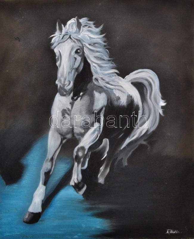 Jelzés nélkül: Fehér paripa. Olaj, vászon, 60×50 cm https://www.darabanth.com/de/370-Fernauktion/370.0/Gemalde-und-Grafiken/Gemalde-und-Grafiken~500001/Jelzes-nelkul-Feher-paripa-Olaj-vaszon-60C39750-cm~II2134263