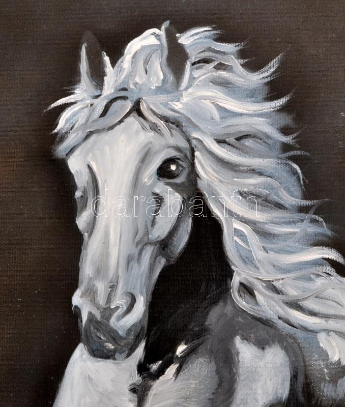 Beschreibung: Jelzés nélkül: Fehér paripa. Olaj, vászon, 60×50 cm