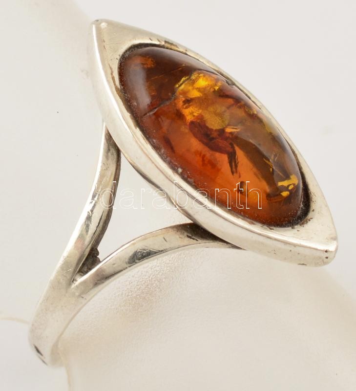 Ezüst(Ag) borostyánnal díszített gyűrű (borostyánon kis repedés), jelz... https://www.darabanth.com/de/370-Fernauktion/370.0/Juwelen/Juwelen~2000026/EzustAg-borostyannal-diszitett-gyuru-borostyanon-kis-repedes-jelzett-meret-51-brutt~II2072919