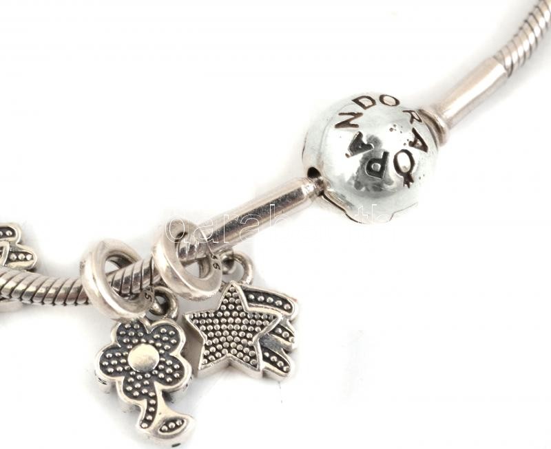 Ezüst(Ag) karkötő, charmokkal (5 db), Pandora jelzéssel, h: 20 cm, bru... https://www.darabanth.com/de/370-Fernauktion/370.0/Juwelen/Juwelen~2000026/EzustAg-karkoto-charmokkal-5-db-Pandora-jelzessel-h-20-cm-brutto-11-g~II2154160