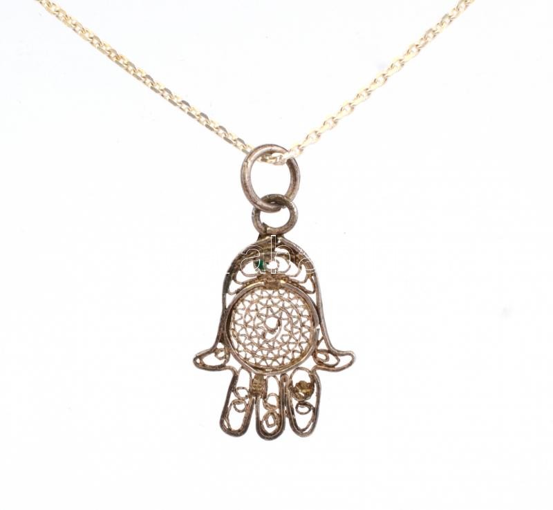 Ezüst(Ag) nyaklánc, filigrán medállal, jelzett, h: 38 cm, 2×1,3 cm, ne... https://www.darabanth.com/de/370-Fernauktion/370.0/Juwelen/Juwelen~2000026/EzustAg-nyaklanc-filigran-medallal-jelzett-h-38-cm-2C3971-3-cm-netto-1-7-g~II2153310