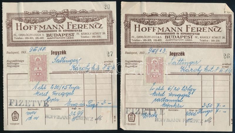 1937-39 Bp., Hoffmann Ferencz Képkereskedés és Képkeretgyár össz. 4 db... https://www.darabanth.com/de/370-Fernauktion/370.0/Kunst-Dokumente-andere-Sammelgebiete/Dokument~500017/1937-39-Bp-Hoffmann-Ferencz-Kepkereskedes-es-Kepkeretgyar-ossz-4-db-dokumentum-jegyzekek-~II2153533