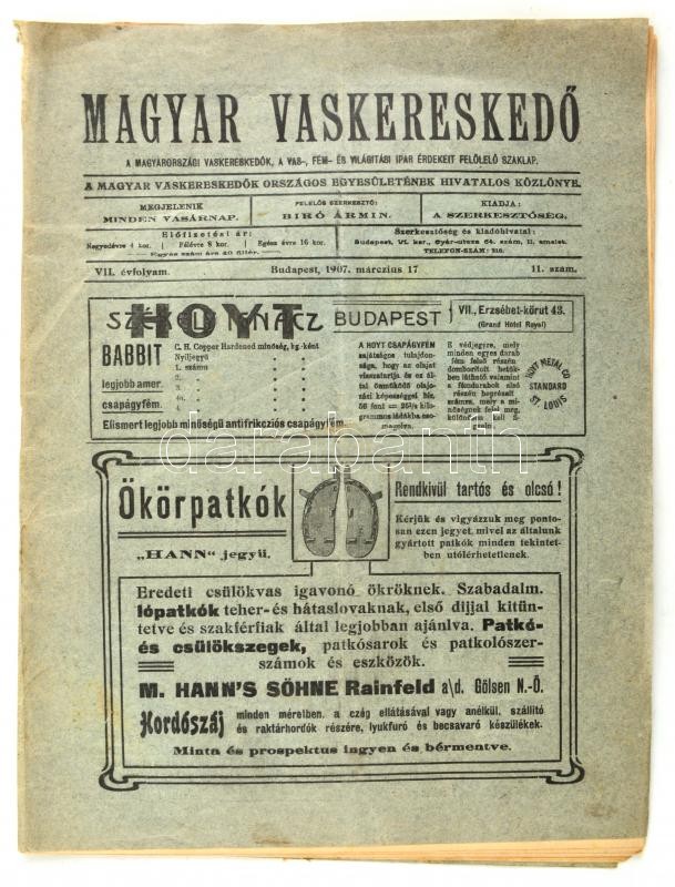 1907 A Magyar Vaskereskedő c. szaklap VII. évf. 11. száma. https://www.darabanth.com/de/370-Fernauktion/370.0/Kunst-Dokumente-andere-Sammelgebiete/Drucksachen~500029/1907-A-Magyar-Vaskereskedo-c-szaklap-VII-evf-11-szama~II2138926