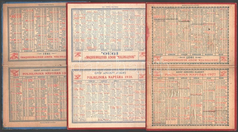 cca 1927-31 3 db Gróf Apponyi Albert Poliklinika kártyanaptár, kopott. https://www.darabanth.com/de/370-Fernauktion/370.0/Kunst-Dokumente-andere-Sammelgebiete/Drucksachen~500029/cca-1927-31-3-db-Grof-Apponyi-Albert-Poliklinika-kartyanaptar-kopott~II2152156