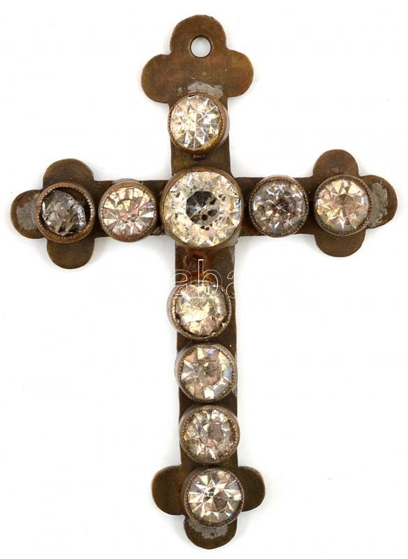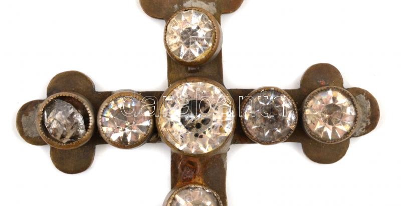 Beschreibung: Fém kereszt üveg kövekkel díszítve, 8,5×6 cm