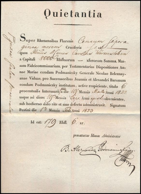 1823 Báró Podmaniczky Sándor (1758-1830) saját kézzel aláírt nyilvánta... https://www.darabanth.com/de/370-Fernauktion/370.0/Kunst-Dokumente-andere-Sammelgebiete/Historische-Dokumenten-Handschriften~500018/1823-Baro-Podmaniczky-Sandor-1758-1830-sajat-kezzel-alairt-nyilvantartasa-grof-Wartensle~II2158098