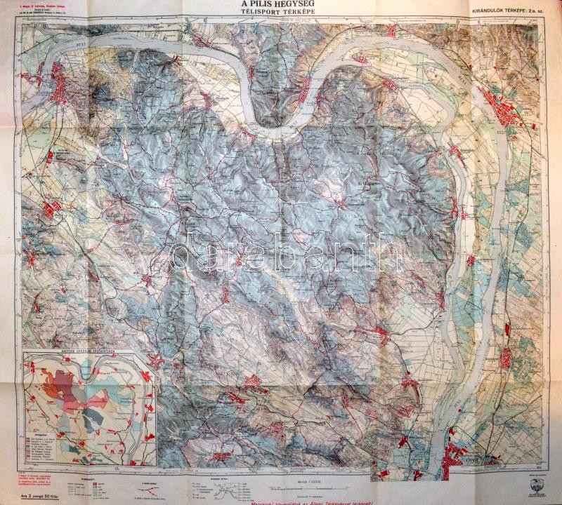 Beschreibung: cca 1930 Pilis Hegység télisport térképe, Kirándulók térképe, 2/a szám, kiadja: Magyar Királyi Állami Térképészet, 68x76 cm, jó állapotban