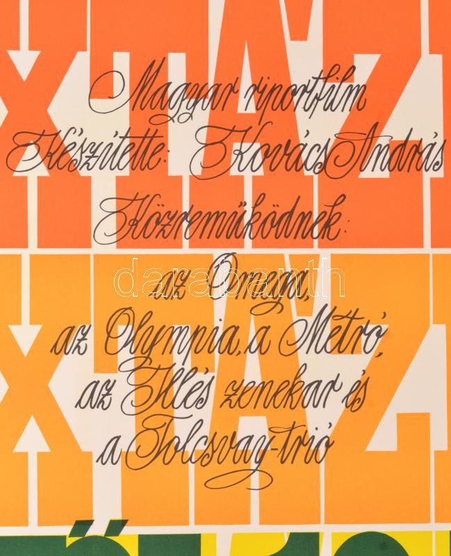 1969 Extázis 7-től 10-ig, magyar riportfilm plakát, rendezte: Kovács András, közreműködnek: Omega, Olympia, Metró, Illés, Tolcsvay-Trió, Bp., MAHIR, Játékkártyagyár, a széleken gyűrődéssel, szakadt, feltekerve, 83x57