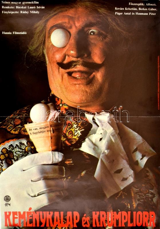 1978 Keménykalap és Krumpliorr, magyar filmplakát, rendezte: Bácskai Lauró István, főszereplők: Alfonzó, Kovács Krisztián, Berkes Gábor, Haumann Péter, Szilágyi István, Hunnia Filmstúdió, Bp., MOKÉP, MAHIR, Offset és J.-ny., feltekerve, 55x39 cm.