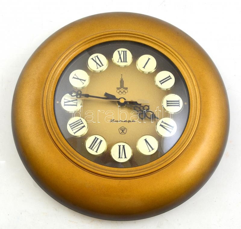 Orosz falióra az olimpiáról, működőképes, jó állapotban, elemmel, d: 2... https://www.darabanth.com/de/370-Fernauktion/370.0/Kunst-Dokumente-andere-Sammelgebiete/Uhren~500009/Orosz-faliora-az-olimpiarol-mukodokepes-jo-allapotban-elemmel-d-27-cm~II2159996