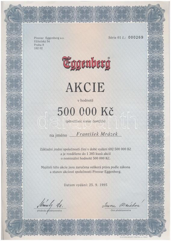 Czech Republic 1995. "Eggenberg" brewery share about 500.000 Korun C:UNC,AU