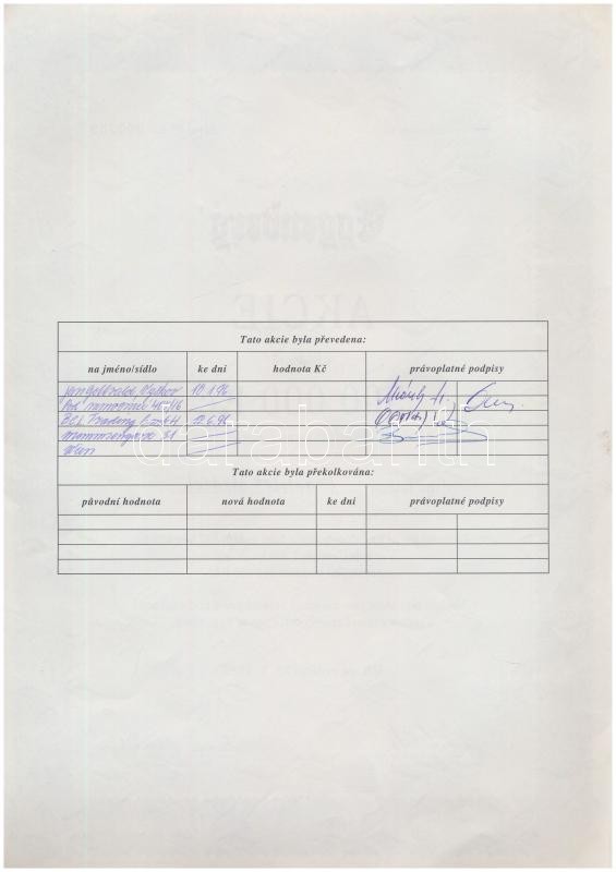 Beschreibung: Csehország 1995. "Eggenberg" sörgyár részvénye 500.000K-ról T:I,I-