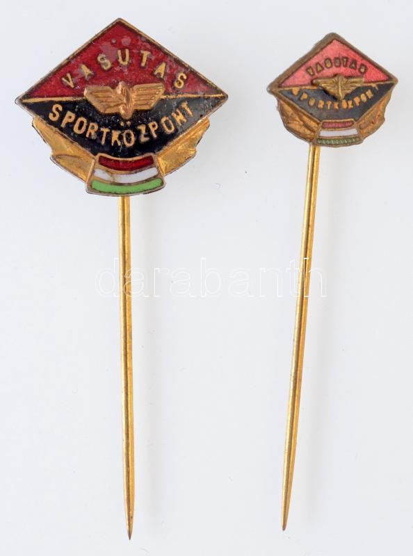 DN "Vasutas Sportközpont" nagy és kicsi zománcozott jelvény együtt T:2