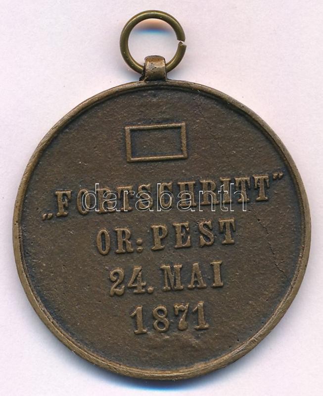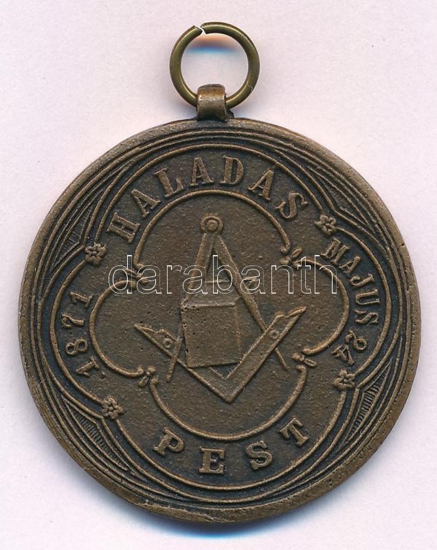 1871. "Haladás 1871 május 24 Pest" / Fortschritt or: Pest 24... https://www.darabanth.com/de/370-Fernauktion/370.0/Numismatik/Freimauerei~2000010/1871-Haladas-1871-majus-24-Pest-Fortschritt-or-Pest-24-Mai-1871-Br-fulezett-szabadkomC5~II2155393