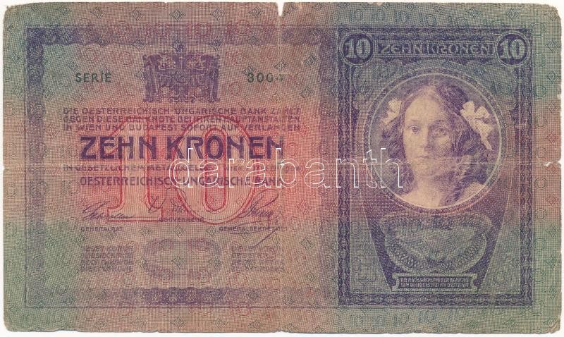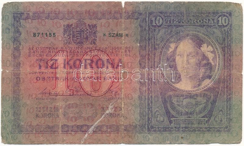 1904. 10K T:III-,IV Adamo K10 https://www.darabanth.com/de/370-Fernauktion/370.0/Numismatik/Ungarische-Banknoten~2000007/1904-10K-TIII-IV-Adamo-K10~II2153597