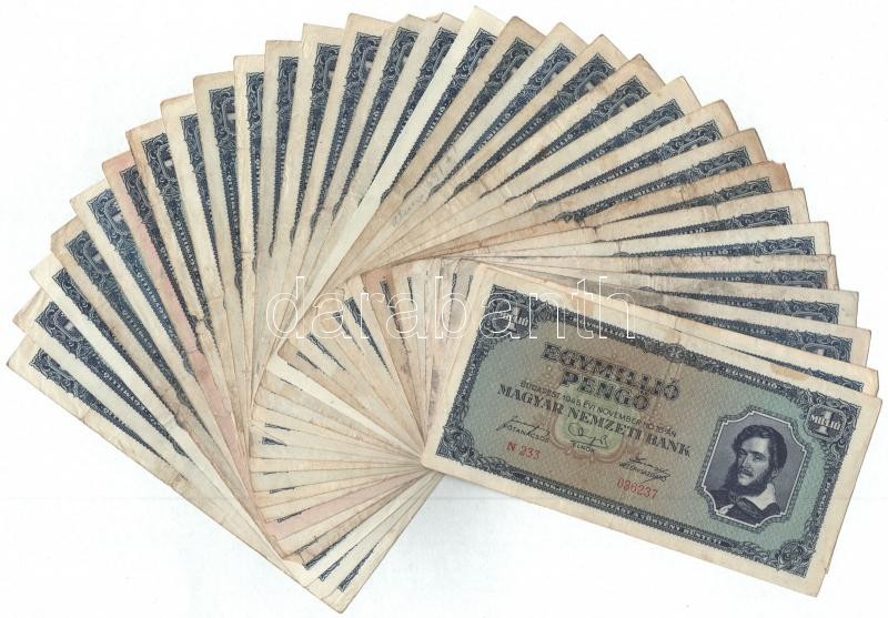 1945. 1.000.000P (31x) T:III,III- fo. https://www.darabanth.com/de/370-Fernauktion/370.0/Numismatik/Ungarische-Banknoten~2000007/1945-1000000P-31x-TIII-III-fo~II2145861