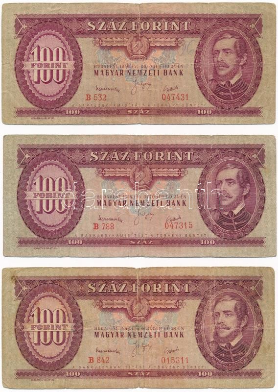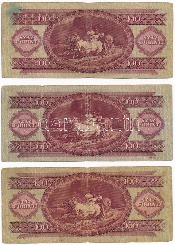 1949. 100Ft (3x) T:III,III- Adamo F28 https://www.darabanth.com/de/370-Fernauktion/370.0/Numismatik/Ungarische-Banknoten~2000007/1949-100Ft-3x-TIII-III-Adamo-F28~II2157649