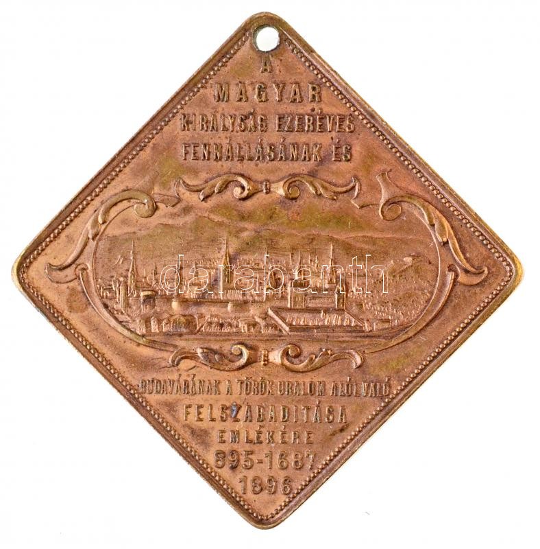 1896. "I. Lipót - I. Ferenc József - Árpád - 1687 - 1896 - 895 / A Magyar Királyság ezeréves fennállásának és Budavárának a török uralom alól való felszabadítása emlékére 895-1687-1896" Br emlékérem