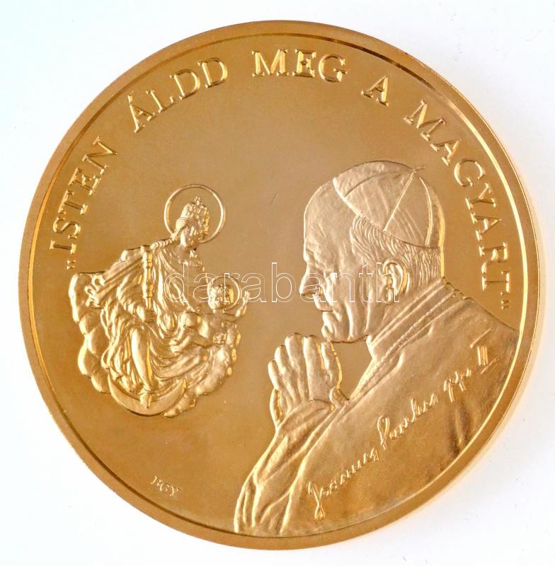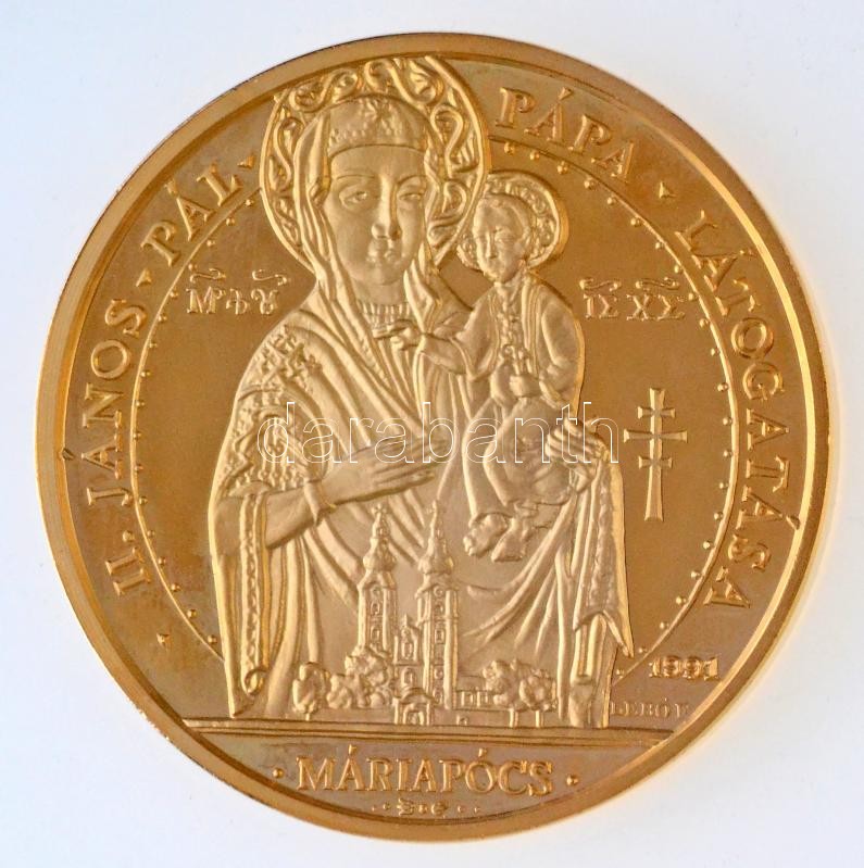 Bognár György (1944-) / Lebó Ferenc (1960-) 1991. "II. János Pál pápa látogatása - Máriapócs" aranyozott emlékérem dísztokban, tanúsítvánnyal (65mm) T:1 (eredetileg PP)