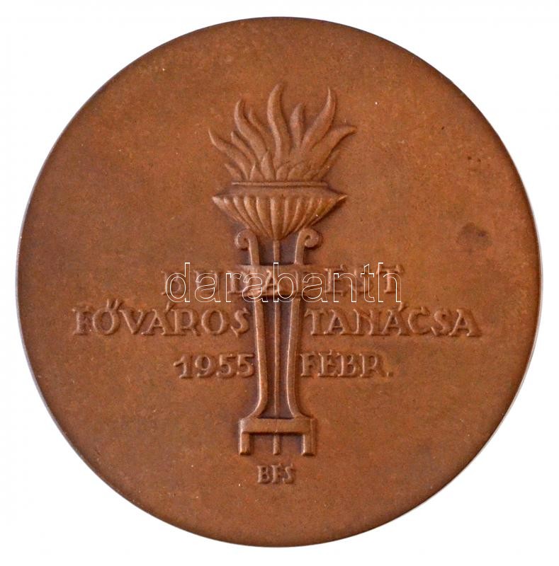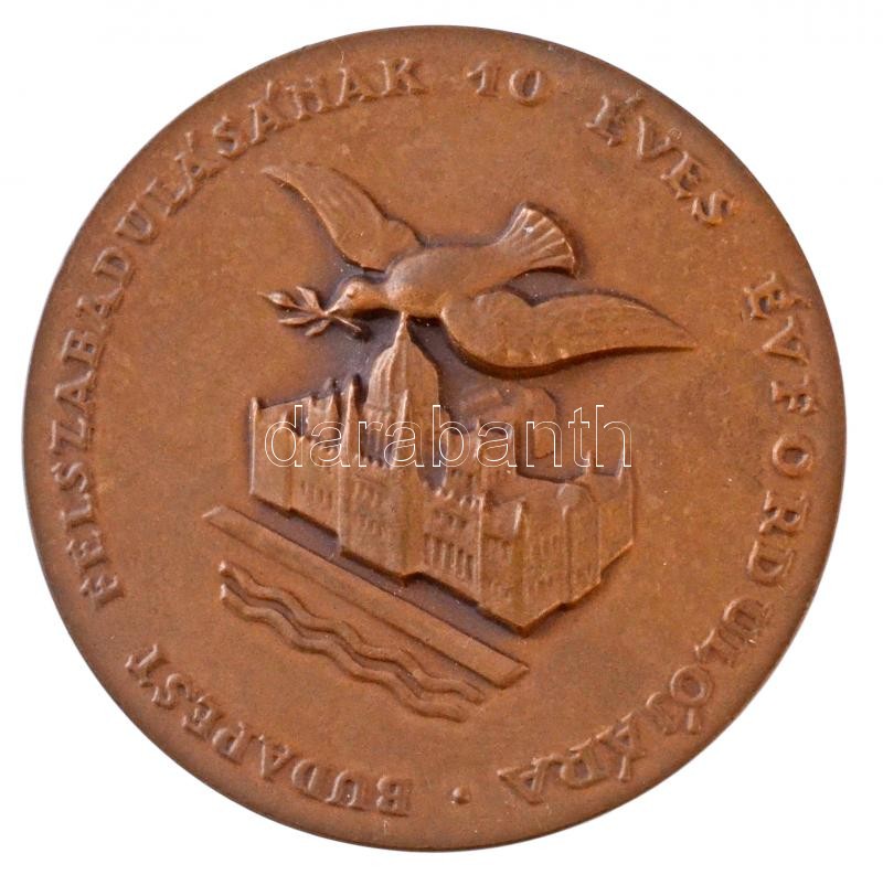 Boldogfai Farkas Sándor (1907-1970) 1955. "BUDAPEST FELSZABADULÁSÁNAK 10 ÉVES ÉVFORDULÓJÁRA / BUDAPEST FŐVÁROS TANÁCSA 1955. FEBR." Br emlékérem (60mm) T:2-