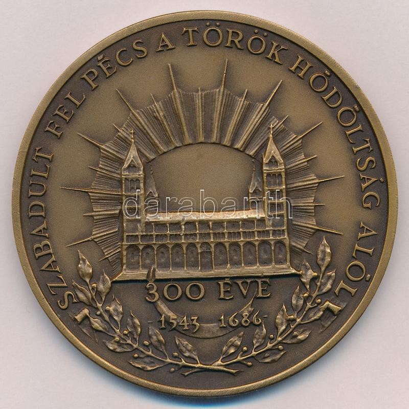 Bozó Gyula (1913-2004) 1986. "Patrona Hungariae / 300 éve szabadult fel Pécs a török hódoltság alól 1543-1686" Br emlékérem (70mm) T:1-
