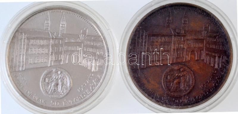 Lapis András (1942- ) 1989. "Szent-Györgyi Albert Orvostudományi Egyetem / Magyar Szemorvos Társaság Vándorgyűlése - Szeged 1989" Br és Ag emlékérem pár, peremen "SZG" jelzéssel (35,48g/0.835/42,5mm) T:1,PP patina