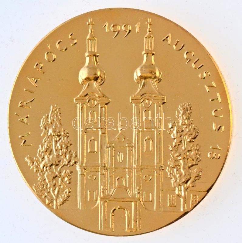 Tóth Sándor (1933-) 1991. "Máriapócs 1991. augusztus 18. / II. János Pál pápa Magyarországon 1991. augusztus" aranyozott fém emlékérem tokban (65mm) T:1