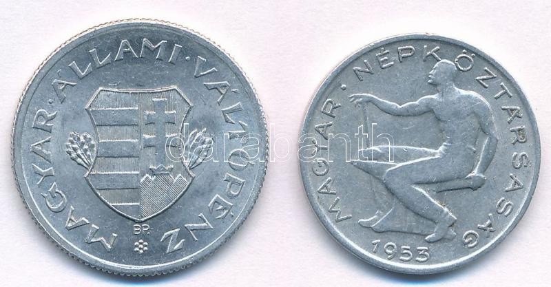 1946. 1Ft Al "Kossuth-címer" + 1953. 50f Al T:2 Adamo F5.1,F... https://www.darabanth.com/de/370-Fernauktion/370.0/Numismatik/Ungarische-Munzen-und-Munzen-mit-ungarischem-Munzzeichen~2000008/1946-1Ft-Al-Kossuth-cimer-plus-1953-50f-Al-T2-Adamo-F51-F6~II2155403