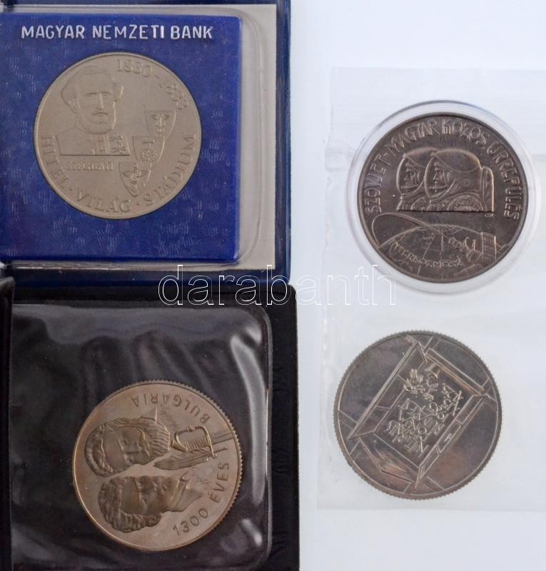 Beschreibung: 1980. 100Ft Cu-Ni "Szovjet-magyar közös űrrepülés" műanyag kapszulában + 1981. 100Ft Cu-Ni "1300 éves Bulgária" műbőr tokban + 1983. 100Ft Cu-Ni-Zn "Széchenyi István" műbőr tokban + 1985. 100Ft Cu-Ni-Zn "Kulturális Fórum" T:1,1-
