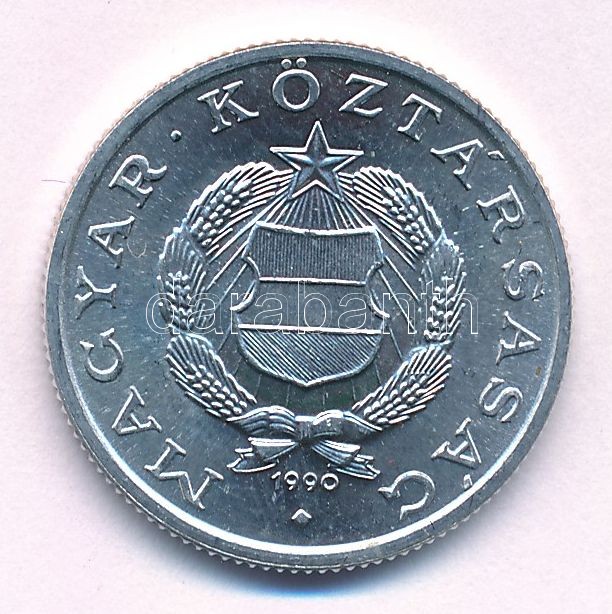 1990. 1Ft Al "MAGYAR KÖZTÁRSASÁG" körirattal, de Kádár-címer... https://www.darabanth.com/de/370-Fernauktion/370.0/Numismatik/Ungarische-Munzen-und-Munzen-mit-ungarischem-Munzzeichen~2000008/1990-1Ft-Al-MAGYAR-KOZTARSASAG-korirattal-de-Kadar-cimerrel-T1-Adamo-FE12~II2159812