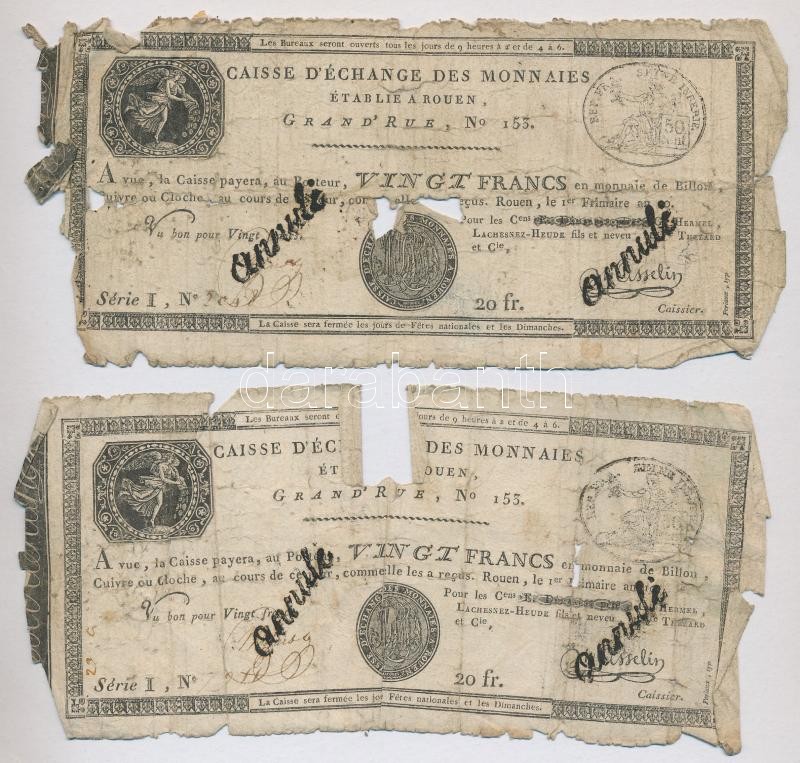 Beschreibung: Franciaország / Rouen 1797-1803. 20Fr "annulé (érvénytelen)" felülbélyegzéssel (2x) T:IV