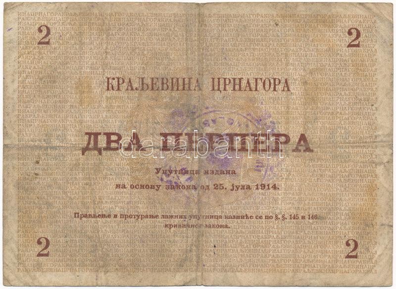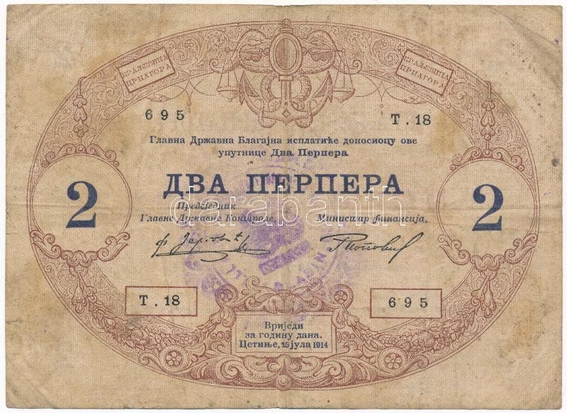Monte... https://www.darabanth.com/de/370-Fernauktion/370.0/Numismatik/Weltweit-Banknoten~2000014/Montenegro-1914-2P-alig-olvashato-belyegzessel-TIII-szakadas-Montenegro-1914-2-Perpera-wit~II2154794