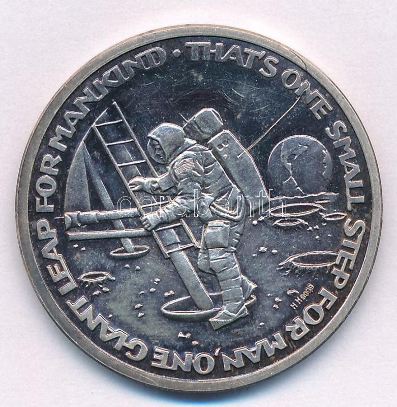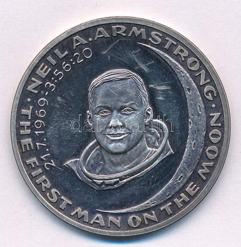 Amerikai Egyesült Államok DN "Neil A. Armstrong - The First Man on the Moon / That's one small step for man, one giant leap for Mankind" kétoldalas jelzett Ag emlékérem (14,78g/0.999/34mm) T:1- (eredetileg PP) patina