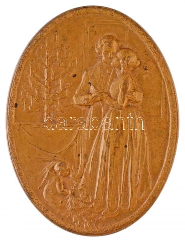Ausztria 1911. "Karácsonyi, újévi jókívánság" Br ovális emlékérem peremen "BRONZE" beütéssel. Szign.: Franz Kounitzky (57x78mm) T:2 ki ph.