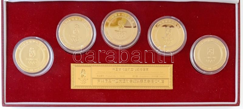 Kína 2008. "Peking 2008 - Ősi kínai építészeti kultúra emlékérem szett" az Olimpia évében kiadott aranyozott emlékérem sorozat (5xklf), tanúsítvánnyal, dísztokban T:PP