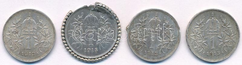Ausztria 1913-1915. 1K (4db, 2xklf) T:2-,3 egyiken fny., másik törött foglalatban