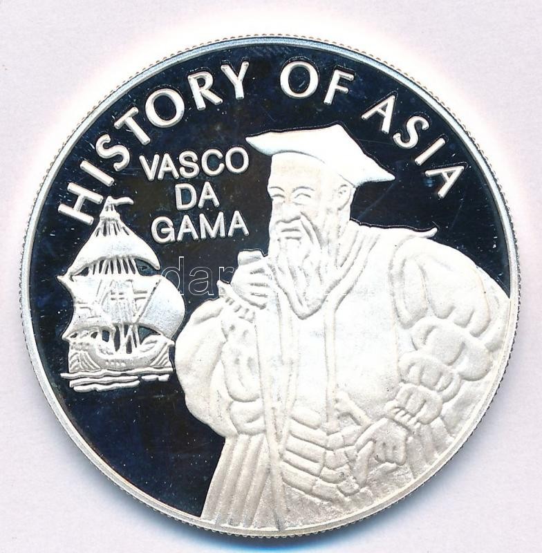 Cook Islands 2004. 1 Dollar Ag "History of Asia - Vasco da Gama" in capsule with certificate (19,57g/0.999/39mm) C:PP