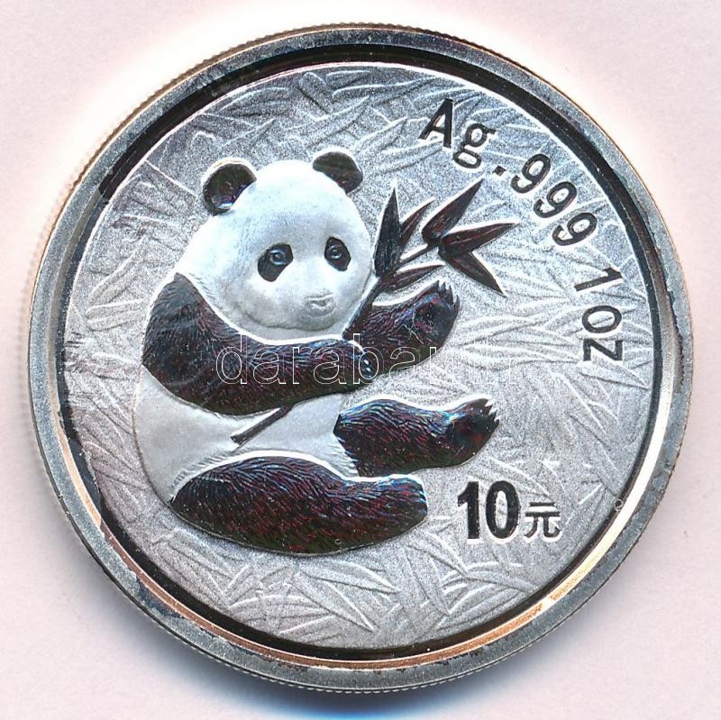 Kína 2000. 10Y Ag "Panda" (31,25g/0.999) T:PP patina