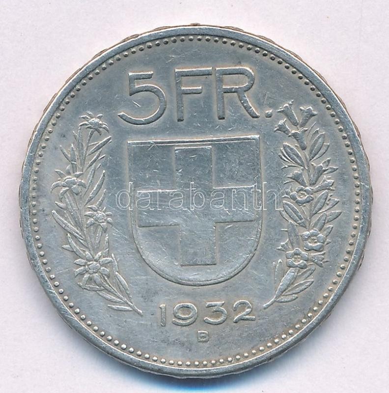 Svájc 1932B 5Fr Ag T:2 Switzerland 1932B 5 Francs Ag C:XF Krause KM#40 https://www.darabanth.com/de/370-Fernauktion/370.0/Numismatik/Weltweit-Munzen~2000015/Svajc-1932B-5Fr-Ag-T2-Switzerland-1932B-5-Francs-Ag-CXF-Krause-KM2340~II2116869
