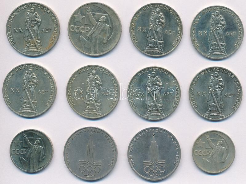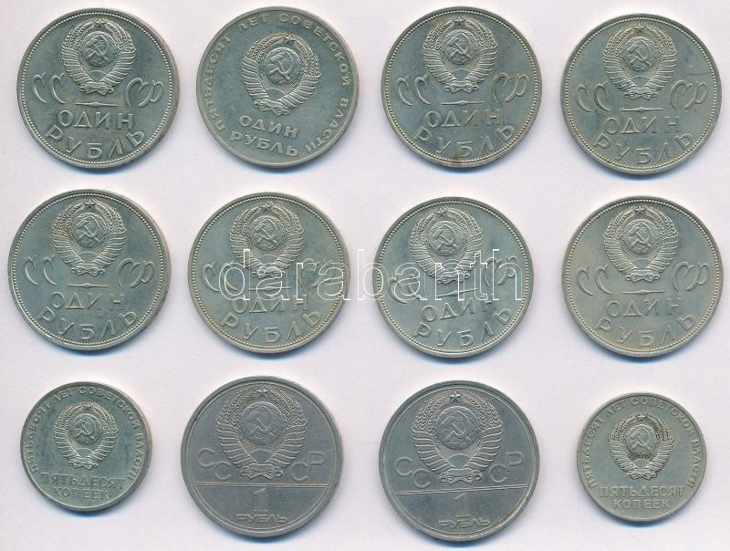 Szovjetunió 1965. 1R Cu-Ni-Zn "II. Világháborús győzelem 20. évfordulója" (7x) + 1967. 50k (2x) + 1R Cu-Ni "Az Októberi Forradalom 50. évfordulója" + 1977. 1R Cu-Ni-Zn "Moszkvai olimpia" (2x) T:2 Soviet Union 1965. 1 Rouble Cu-Ni-Zn "20th Anniversary of World War II Victory" (7x) + 1967. 50k (2x) + 1 Rouble Cu-Ni "50th Anniversary of the October Revolution" + 1977. 1 Rouble Cu-Ni-Zn "Moscow Olympics" (2x) C:XF