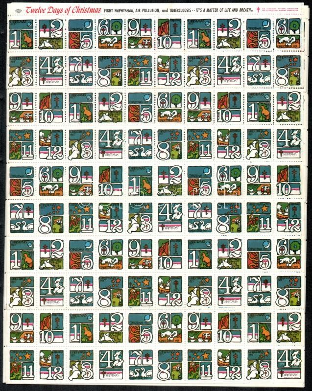 Beschreibung: USA 1973 Karácsony levélzáró 10x100 db-os ív