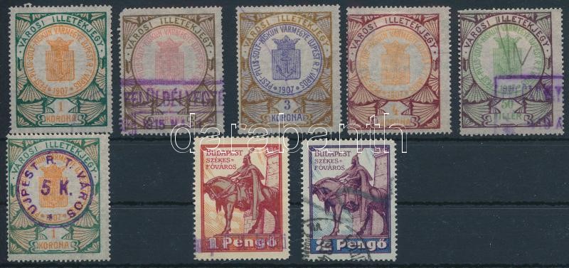 Beschreibung: 1907 8 db városi illetékbélyeg