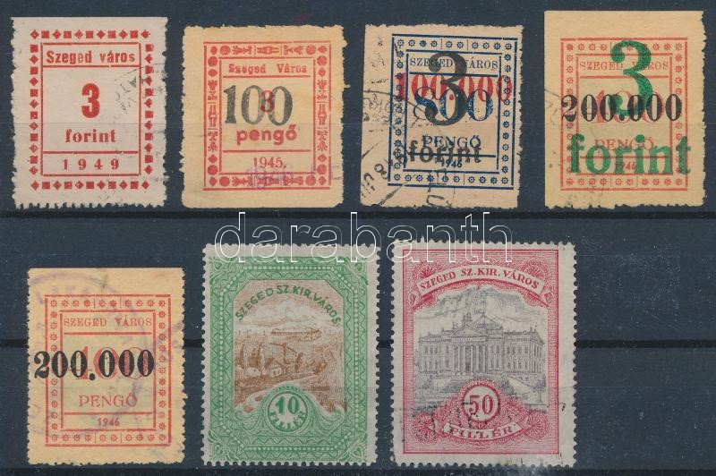 Beschreibung: 7 db Szeged városi illetékbélyeg