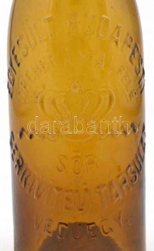 Beschreibung: "Egyesült Budapesti Dreher Antal Féle Sör" feliratú üvegpalack, csorbákkal, kopásnyomokkal m: 29 cm
